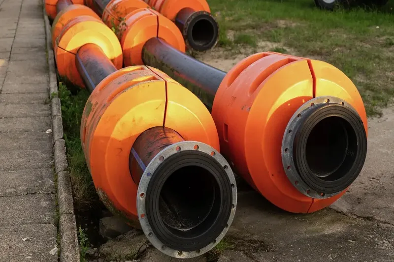 - شناورسازی: شناورهای مخصوص (Floater) که معمولاً از جنس پلی یورتان یا خود پلی اتیلن هستند، در فواصل معین به دور لوله نصب میشوند. این شناورها وزن لوله و محتویات آن را تحمل کرده و آن را روی سطح آب نگه میدارند.